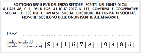 “SOSTEGNO DEGLI ENTI DEL TERZO SETTORE ISCRITTI NEL RUNTS DI CUI ALL’ART. 46, C. 1, DEL D.LGS. 3 LUGLIO 2017, N. 117, COMPRESE LE COOPERATIVE SOCIALI ED ESCLUSE LE IMPRESE SOCIALI COSTITUITE IN FORMA DI SOCIETA’, NONCHE’ SOSTEGNO DELLE ONLUS ISCRITTE ALL’ANAGRAFE”; - Indica nel riquadro il codice fiscale di CAPITOLO ITALIANO INS: 94157810485.